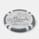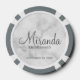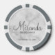 Añade un toque personal a tu boda con fichas de póquer personalizadas para la dama de honor. Este diseño presenta el nombre personalizado de la dama de honor en el estilo de letra de escritura moderna y gris con título y fecha boda en el estilo de fuente sans serif moderno gris sobre fondo de mármol blanco. También perfecto para la criada de honor, madre de la novia y más. Los detalles de mármol se simulan en las obras de arte. Este producto no será fabricado con mármol real.