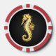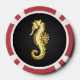Artístico, poligonal, caballito de mar de chispa, Relieve metalizado dorado sobre fondo negro.