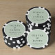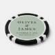 Celebra tu gran día con un toque divertido y elegante utilizando estas fichas de póquer personalizadas de color verde salvia con los nombres de la novia y el novio en una tipografía serif clásica. Con un diseño circular moderno que incluye sus nombres, fecha y lugar de la boda, estas fichas sirven como recuerdos elegantes y acentos decorativos divertidos para tu recepción, cóctel o fiesta posterior. Son ideales para bodas de destino, recepciones con temática de casino, celebraciones con temática de Las Vegas o parejas que aman un poco de diversión con su elegancia. Totalmente personalizables para coincidir con la paleta de colores y el estilo de tu boda, estas fichas de póquer personalizadas hacen que tu celebración sea inolvidable. Perfectas para parejas modernas, bodas temáticas y regalos memorables para los invitados que se destacan de lo ordinario.