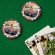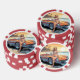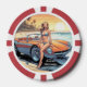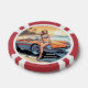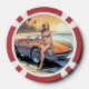 Un retrato moderno de un chica encantador, con un coche deportivo, en un hermoso paisaje de mar y playa, con colores cálidos al atardecer. Gráfico informático