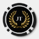 Los chips de póquer se muestran con iniciales de muestra y una corona de oro ganadora. Personalizar y cambie las iniciales de ejemplo a las suyas.