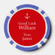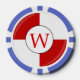 Fichas de póquer con monograma temático de crucero con un cinturón de salvavidas de barco. Todo el texto en la parte delantera y trasera es personalizable, para que pueda cambiar los nombres y agregar su propio mensaje