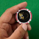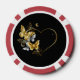 Marco dorado en forma de corazón, decorado con oro, joyas y mariposas blancas sobre fondo negro.