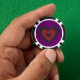 Este impresionante conjunto de chips de póquer presenta una hermosa imagen digital de un corazón gótico negro y rojo con bordes andrajosos que brillan con una luz etérea y parecen estar derritiéndose. El fondo es morado.