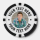 This custom poker chip features your photo printed right on the front in a clean circular layout, with space for short text above and below the image. Add a name, date, team slogan, or a fun message to make it personal. It works with anything from a favorite game shot to a family photo, a pet pic, or something playful for friends or a poker night.