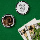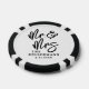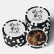 These custom poker chips feature a clean, all-white background on one side with all text in black for a classic and elegant look. “Mr. & Mrs.” appears in large black handwritten script, with the couple’s last name and wedding date placed directly below in a refined black serif font for a balanced finish. The other side can feature a favorite photo of your choice, keeping the design personal and memorable.