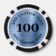 Personalize these poker game chips with your business logo in the front and your own text on the back. This design with a faux blue metallic background, numbered with a 100 denomination, so it can be used for playing, and it can be edited with any value amount.