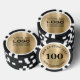 Personalize these poker game chips with your business logo in the front and your own text on the back. This design with a gold faux metallic background features is numbered with a 100 denomination, so it can be used for playing, and it can be edited with any value amount.