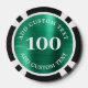 Personalize these faux green metal poker chips with your business logo in the front and your own text on the back. It includes a 100 value denomination to be used for playing in a casino night, and it can be edited with any value amount.
