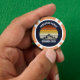 This cool orange vintage sunset over rocky mountains in nature makes a great image for customized navy blue poker chips for a family reunion, road trip, or summer vacation outdoors.