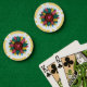 Trae un toque de encanto occidental a tu próxima noche de juego con estos coloridos chips de póquer de girasol con un divertido estilo de vaquera. Perfecto para torneos de póquer, noches de casino o juegos caseros informales, estos chips únicos combinan los rústicos tonos occidentales con un audaz diseño floral. El gráfico de girasoles luminoso añade un toque de color y personalidad, haciendo que estos chips destaquen de los estilos tradicionales. Ideal para Texas Holdem, Blackjack o cualquier juego de cartas, también hacen un regalo para los amantes del póquer que disfrutan de una mezcla de estilo rústico y bohemio. Ya sea que estés alojando a un fiesta occidental con temas, buscando accesorios decorativos para el casino, o que solamente quieras añadir estilo a tu colección de póquer, estos chips de póquer de cowgirl de girasol son una elección elegante y funcional. Durables, llamativas y divertidas, son la manera perfecta de animar tu próxima noche de póquer.