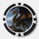 Un dragón majestuoso con cobre, báscula dorada y negra en un borde acantilado con cielos azules detrás.