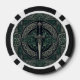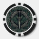 Diseño celta en tonos verdes con una espada corta y nudos celtas.