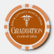 Esta ficha de póquer para fiesta de graduación personalizada de la Facultad de Medicina Naranja presenta tipografía blanca elegante bajo un caduceo médico y el nombre de su universidad para la promoción de 2026. Personalice con su año de graduación bajo la caligrafía elegante para obtener excelentes regalos personalizados para graduados universitarios para enfermeras o médicos.