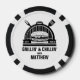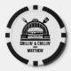 Estas fichas de póquer para la fiesta de soltero tienen arte de icono de BBQ en la parte delantera y trasera. Personaliza el texto encima. Artículos coincidentes disponibles.