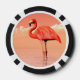 Un flamingo rosa parado en el agua por la colorida puesta de sol