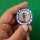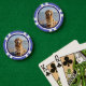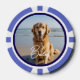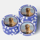 Mascota foto personalizada de fichas de póquer. Reemplace la foto por la suya propia y cambie el texto. Fácil de hacer desde la página del producto. Guión blanco con foto y fondo azul.