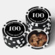 Estas fichas de póquer personalizadas presentan un número en negrita en la parte delantera en lugar de iniciales, que se pueden personalizar con cualquier número de hasta cuatro dígitos. La parte delantera tiene un fondo negro elegante con fuentes blancas nítidas para un aspecto clásico y llamativo. La parte trasera incluye espacio para una foto, lo que las hace perfectas para bodas, cuartos de hombres, despedidas de soltero o como un regalo memorable. Todo el texto, números y detalles se pueden personalizar completamente para adaptarse a tu estilo o tema del evento.