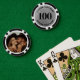 Estas fichas de póquer personalizadas presentan un número en negrita en la parte frontal, que se puede personalizar con cualquier número de hasta cuatro dígitos. La parte frontal tiene un fondo plateado metálico falso combinado con fuentes negras nítidas para un aspecto elegante, moderno y pulido. La parte posterior incluye espacio para una foto, lo que las hace perfectas para bodas, cuevas de hombres, fiestas de soltero, noches de juegos o como un regalo personalizado memorable. Todo el texto, números y detalles de diseño son totalmente personalizables para adaptarse a tu estilo o tema del evento.