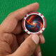 Una galaxia espiral con brazos mayores en tonos rojos y amarillos como si estuvieran brillando con fuego. Los brazos más bajos de los grupos de estrellas brillantes de color azul y blanco se entrelazan.