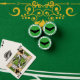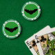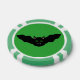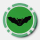 Este impresionante juego de fichas de póquer tiene un murciélago vampiro espeluznante con la cara de un gato. El murciélago está volando con las alas estiradas y tiene los ojos verdes del mal de un gato espeluznante y algunos colmillos blancos aterradores. Esta quimera espeluznante es la criatura perfecta para una Halloween inquietante.
