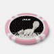 Estas fichas de póquer tienen una imagen en blanco y negro de un lindo gato blanco cruzando las teclas del piano con varias notas de música blanca al fondo. Personalizar el texto con las plantillas.