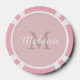 Bring a unique touch to the game while adding elegance and individuality with these modern and minimal personalized monogram poker chips, featuring your name and initial in a blend of modern and script fonts set against a pink background. A great gift choice for birthdays, Mother's Day, bridesmaid gifts, or anyone who values a personalized touch to their game.