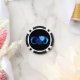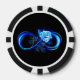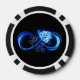 Luminous infinity symbol with glowing, beautiful, lushly blooming rose made of blue flames on black background.