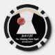 Fun poker chips with a black tie tuxedo and white rose flower corsage, and white bridal gown with pink flower to personalize with the bride and groom's names for a jack and jill pre-wedding party poker game. Personalized playing cards also make a fun wedding usher and bridesmaids gift.