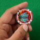 Esta impresionante fotografía macro capta el detalle impresionante de una ala de mariposa adornada con brillantes caídas de agua. El ala muestra un espectacular degradado de color, pasando de rojos feroces y naranjas vibrantes a un turquesa fresco y apacible. Cada pequeña escala crea un intrincado patrón celular, maravillosamente magnificado por las gotas de agua cristalinas que descansan en la superficie como joyas preciosas. Esta imagen es una celebración de la delicada, vibrante y a menudo invisible belleza del mundo natural.