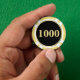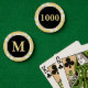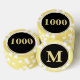 Crea tus propias fichas de póquer personalizadas, con monograma dorado moderno falso de 1000 denominación sobre fondo negro, en 9 colores vibrantes, y con superficie texturizada para apilar fácilmente. Simplemente escribe tus iniciales / monograma, para personalizar. Incluso puedes cambiar la denominación de 1000 a una de tu elección. Mientras agregas / diseñas, podrás ver una vista previa de tu creación en todo momento. Fichas únicas, ideales como obsequios de boda, boletos de bebida, marcador de golf, recuerdos encantadores para bodas, fichas para bebidas en eventos, obsequios para cumpleaños, fiestas de despedida de soltera y eventos corporativos, regalos de despedida de soltero, organizando una noche de póquer, y para torneos de póquer en casa, locales o de clubes. O simplemente para agregar un elemento de estilo a la mesa. Son un gran regalo para cumpleaños, día del padre, día de la madre, Navidad, fiestas, año nuevo, boda, aniversario de bodas, y más, para tus seres queridos, mamá, pap