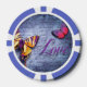 Mariposas y texto de amor sobre fondo azul texturado con obras de arte caligráficas.