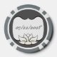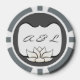 Dé a los invitados, damas de honor, padrinos, o a cualquier otra persona que asista o ayude con su boda sereno o evento especial un regalo especial con estas fichas de póquer de personalizable. Ambos lados presentan una suave flor de loto blanco acentuando un elegante marco florido negro, que se sienta en un fondo gris de agua de bonito. El texto de ejemplo se encuentra dentro de estos dos marcos que puede personalizar con sus propios detalles o un mensaje especial de su elección para crear un token único y personal para conmemorar su gran día. Este diseño coincidirá con cualquier producto de la línea de exquisito Lotus en blanco para que pueda hacer que su boda o evento especial esté tan coordinado como desee.