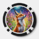 A majestic fox sits in a field of vibrant flowers, gazing up at the sky. Its beautiful red fur shines with white accents, and its pointy ears are alert. Butterflies flutter among the blossoms, surrounded by pink and purple hues. The fox rests gracefully in the long grass, encircled by the colorful flowers.