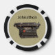 Estos chips de póquer tienen una vieja máquina de escribir negra vintage manual en un fondo bronceado con textura de imitación de marmol. Personalizar el texto con las plantillas.