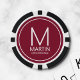 Añade un toque personal a tu boda con un chip de póquer personalizado para los padrinos. Este diseño presenta un monograma personalizado de groomsman y su nombre con título en blanco moderno sans serif estilo tipo de letra sobre fondo rojo burdeos. También perfecto para el mejor hombre, padre de la novia y más.