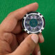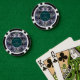 A bold and sophisticated Poker Chips featuring dramatic dusty blue and grey floral illustrations against a stark black background. The crisp white typography and classic layout set an elegant, moody tone. Perfect for a formal evening or a sophisticated wedding.