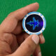 Una simple imagen fractal 3D de color azul que se parece a una nave espacial estilizada superpuesta sobre un fondo estrellado. Los anillos concéntricos (¿ondas gravitatorias?) emanan de la nave espacial en el vacío aparentemente vacío vacío vacío del espacio. Un aura azul claro rodea la nave espacial, lo que tal vez resulte en un viaje más rápido que ligero. Añadir su propio texto al reverso