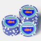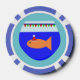 Este impresionante juego de fichas de póquer tiene un divertido Navidad de naranjas de oro usando un sombrero festivo de santa. El pez dorado está nadando en el agua azul de su pecera. El pez ha decorado la parte superior del tazón con banderas rojas y verdes que deletrean el mensaje "Merry Fishmas". Este divertido pescado de temporada está listo para un gran fiesta de Navidades.
