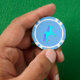 Este impresionante juego de fichas de póquer presenta una imagen de arte digital de un lindo unicornio azul mágico. El cuerpo principal del unicornio es azul y el hombre y la cola son dos tonalidades diferentes de azul. El unicornio tiene cascos dorados y un brillante cuerno de oro sobre su cabeza. Tiene un ojo en forma de diamante azul. El unicornio tiene una gran sonrisa en la cara.