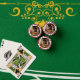 Se muestran cuatro gatos sentados alrededor de una mesa con una pizza lista para comer.