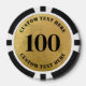 Estas fichas de póquer personalizadas presentan un número en negrita en ambos lados, que se puede personalizar con cualquier número de hasta cuatro dígitos. Ambos lados tienen un fondo dorado metálico falso con fuentes negras nítidas para un aspecto lujoso y llamativo. Glamuroso ajuste para una noche de casino de alta gama. Perfecto para bodas, cuartos de hombre, despedidas de soltero o como regalo memorable. Todo el texto, números y detalles se pueden personalizar completamente para adaptarse a su estilo o tema del evento.