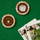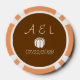 Dé a los invitados, damas de honor, padrinos, o a cualquier otra persona que asista o ayude con su boda o evento especial de otoño un regalo especial con estos chips de póquer de personalizable. Un lado del chip de póquer tiene una silueta de calabaza blanca sobre un fondo marrón chocolate rico. El otro lado tiene un conjunto de iniciales de muestra y fecha separadas por una calabaza coincidente. El texto de ejemplo se puede personalizar con sus propios detalles o con un mensaje especial de su elección para crear una ficha única y personal para conmemorar su gran día. Este diseño coincidirá con cualquier producto de la línea Pumpkin Patch in Chocolate para que puedas hacer tu boda de otoño o evento especial tan coordinado como quieras.