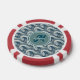 Estos chips de póquer temáticos de playa presentan un patrón oceánico polinesio de olas verde azuladas y blancas, decoradas con puntos y bellamente flores azules verde azuladas. Su monograma inicial y su nombre aparecen en un círculo de luz verde azulado, con el inicial en verde azulado oscuro y el nombre en blanco espumoso. Este juego de cartas de estilo costero te recordará al océano, ya sea que estés jugando a las cartas en una villa junto a la playa o en la noche de póquer del miércoles. Estas fichas se coordinan con un conjunto de cartas de juego.