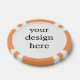 Estilo: Composite Poker Chips Personalizar estos hermosos chips de póquer impresos con sus diseños únicos para cualquier ocasión! Impreso en un color vívido con tu texto, diseños o fotos, dándole a tu torneo de póquer en casa un toque único y profesional. Estos chips de póquer también son fantásticos favoritos para bodas, cumpleaños, fiestas de soltera y eventos corporativos. Dimensiones: 1,55" x 1,55" ancho x 0,125" h; 0,02 libras (por chip) Superficie texturada para un fácil apilamiento. Impresos a todo color en el anverso, reverso y laterales. Fabricado con plástico compuesto duradero Elija entre 9 colores vibrantes