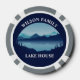 These cool custom lake house poker chips feature a serene blue river surrounded by trees and your personalized text for a family reunion, camping trip, or summer vacation. Customize with your last name or other group name.