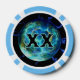 Una imagen fractal compuesta de descargas eléctricas azules, relámpago, en una esfera. Personalizar añadiendo su propio texto en la parte superior, y el valor del chip en el reverso.