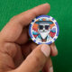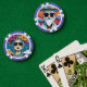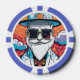 Este diseño de chip de póquer está hecho de un ilustracion colorido de un hombre de moda con barba blanca, gafas de sol rectangulares y gorra de cilindros. ¡Este es un gran diseño de chip de póker para la gente que valora su estilo!