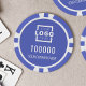 Crea tus propios chips de póquer púrpura personalizado con el logo y el nombre de tu compañía.