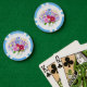 Fichas de póquer con hermosas imágenes de ramos de flores. El fondo, la imagen y el texto se pueden modificar. Obra de arte original de W.B.